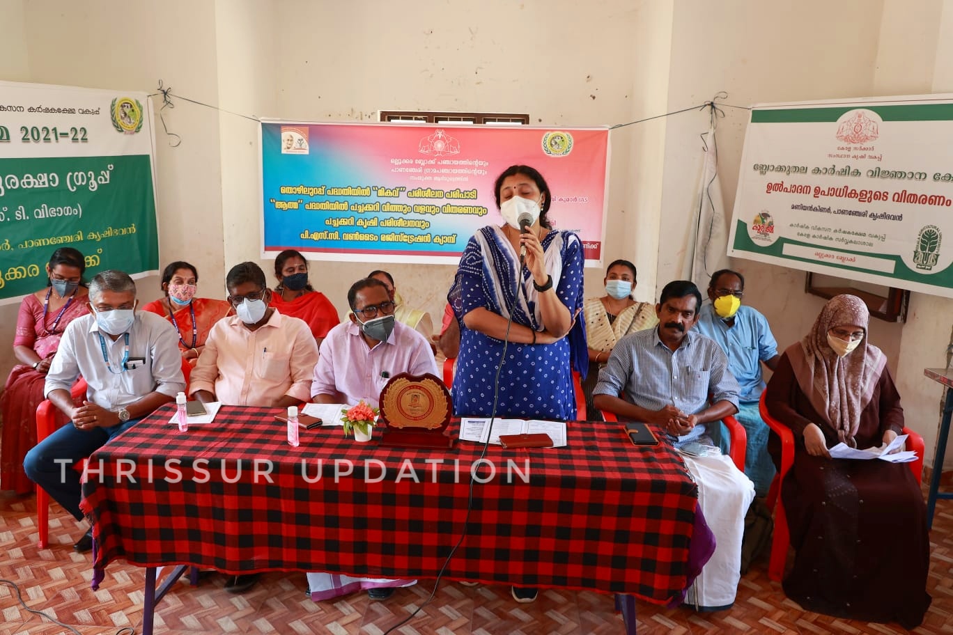 പച്ചക്കറി വിത്തും വളവും ചട്ടിയും വിതരണ ഉദ്ഘാടനം പാണഞ്ചേരി ഗ്രാമപഞ്ചായത്ത് പ്രസിഡന്റ് പി പി രവീന്ദ്രൻ നിർവ്വഹിച്ചു. ജില്ലാ പഞ്ചായത്ത് മെമ്പർ കെ വി സജു