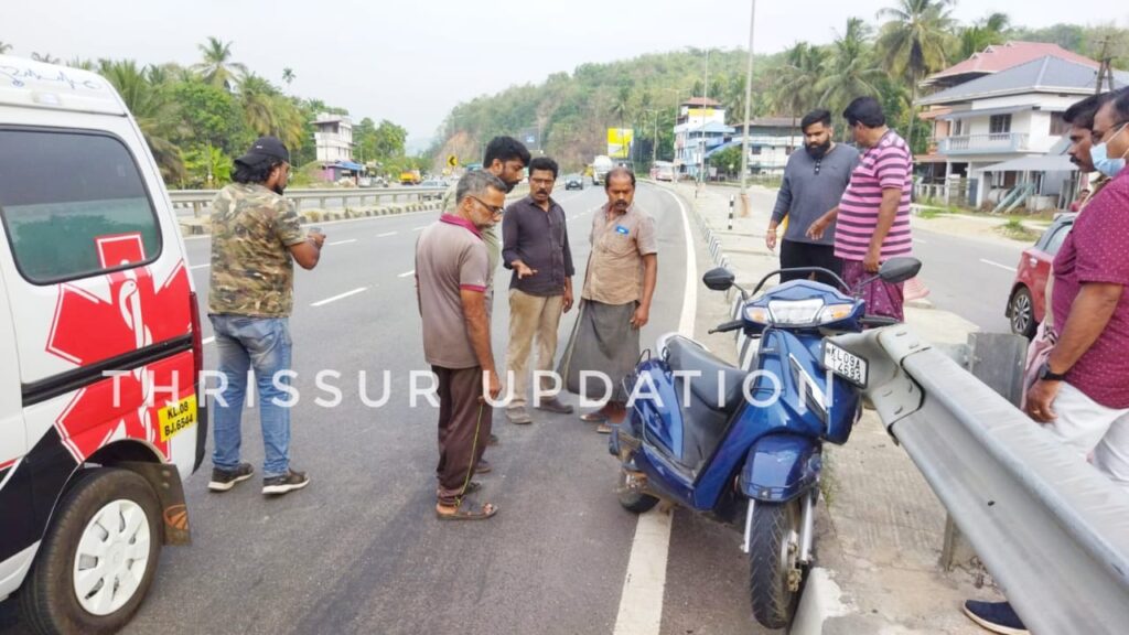 പട്ടിക്കാട് ദേശീയ പാതയിൽ മേൽപാലം തുടങ്ങുന്ന ഭാഗത്ത് നിയന്ത്രണം വിട്ട് സ്ക്കൂട്ടർ ഡിവൈഡറിൽ ഇടിച്ച് യാത്രക്കാരന് പരിക്ക് . അപകടം പറ്റിയ ആളെ ഉടൻ തന്നെ ആംബുലൻസിൽ ജില്ലാ ആശുപത്രിയിലേക്ക് കൊണ്ടുപോയി.
