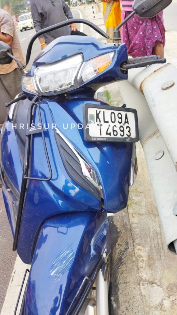 അപകട കാരണം വ്യക്തമല്ല. KL.09 AT 4693 എന്ന നമ്പർ സ്കൂട്ടൂറിൽ സഞ്ചരിച്ച ആൾക്കാണ് പരുക്ക് പറ്റിയത്.