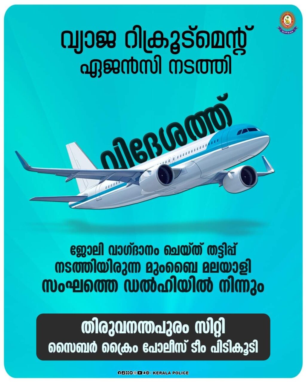 ജോലിവാഗ്ദാനം ചെയ്ത് തട്ടിപ്പ് നടത്തിയിരുന്ന മുംബൈ മലയാളി സംഘത്തെ ഡൽഹിയിൽ നിന്നും സൈബർ ക്രൈം പോലീസ് ടീം പിടിക്കൂടി
