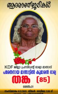 KDF ജില്ലാ പ്രസിഡന്റ് ഭാര്യാ മാതാവ് പരേതനായ ഒരപ്പൻപാറ മാന്താട്ടിൽ കുമാരൻ ഭാര്യ തങ്ക