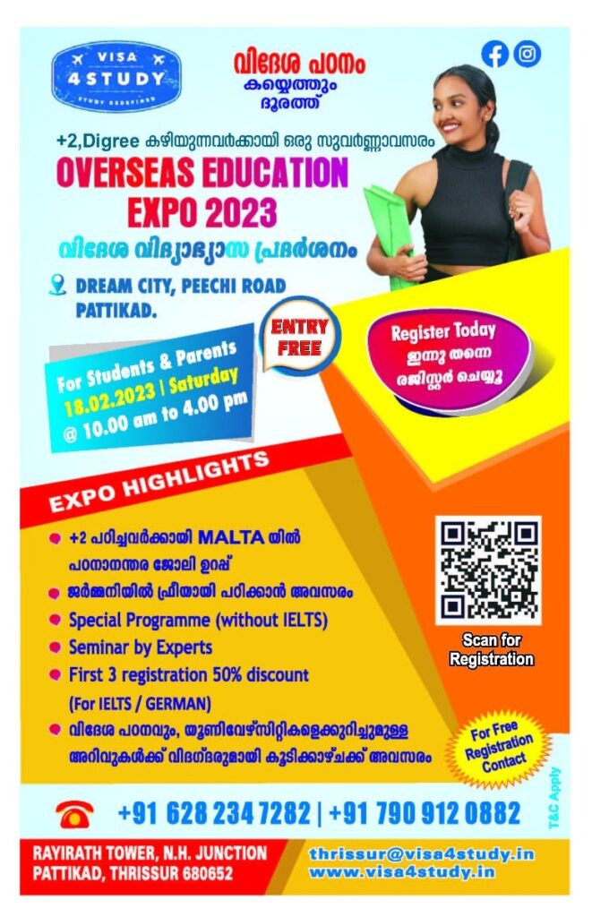 ▪️വിദേശ പഠനവും, യൂണിവേഴ്സിറ്റികളെക്കുറിച്ചുമുള്ള അറിവുകൾക്ക് വിദഗ്ദരുമായി കൂടിക്കാഴ്ചക്ക് അവസരം