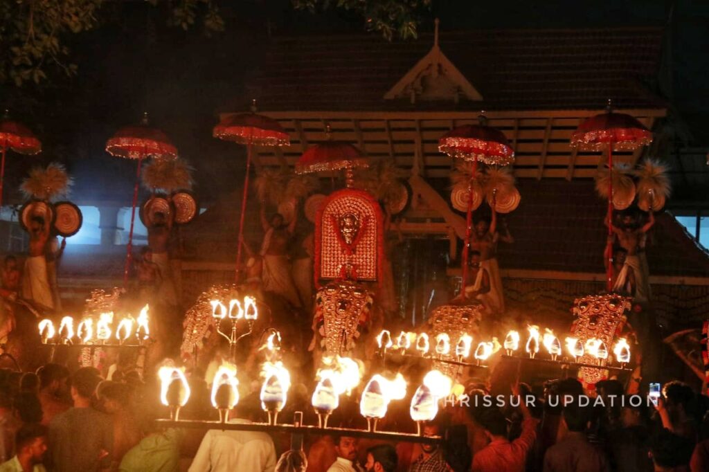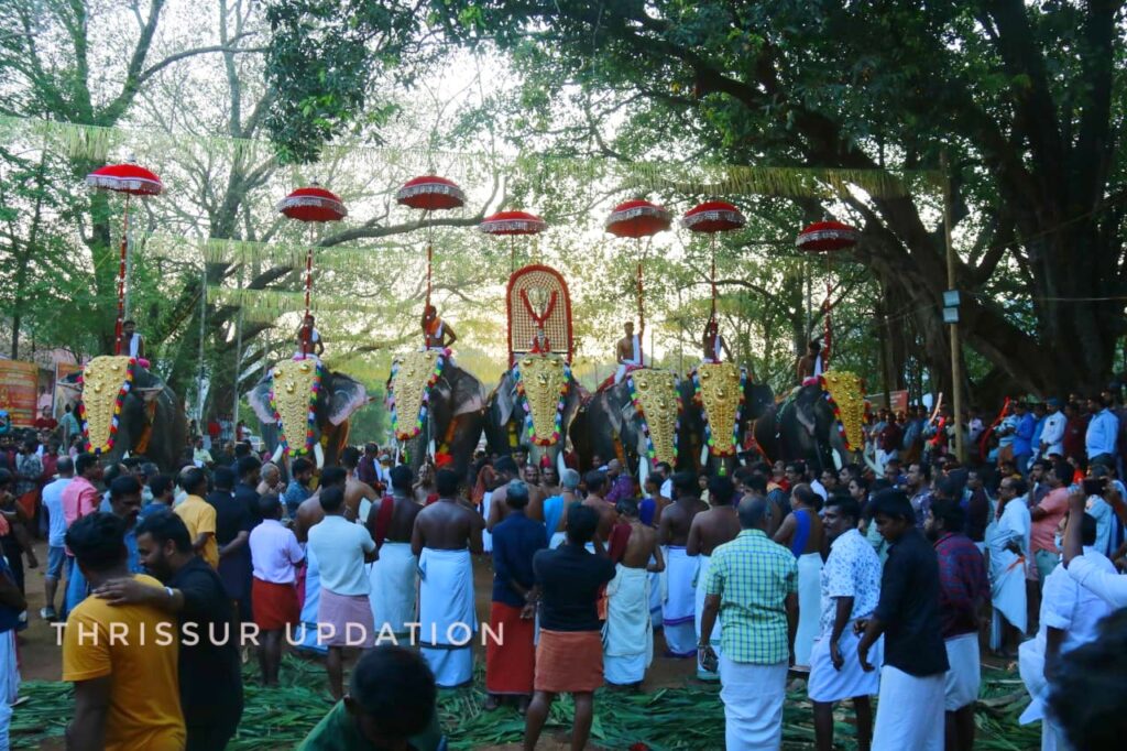 ഉച്ചതിരിഞ്ഞ് ആറാട്ടിനെഴുന്നള്ളിപ്പോടെ പകൽപ്പൂരം തുടങ്ങി.