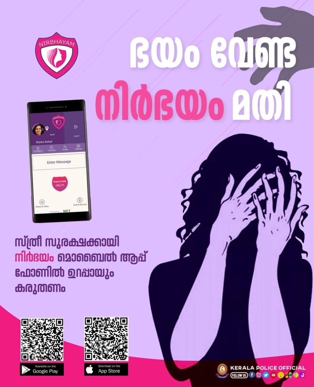 സ്ത്രീ സുരക്ഷക്കായി നിർഭയം മൊബൈൽ ആപ്പ് ഫോണിൽ ഉറപ്പായും കരുതണം
