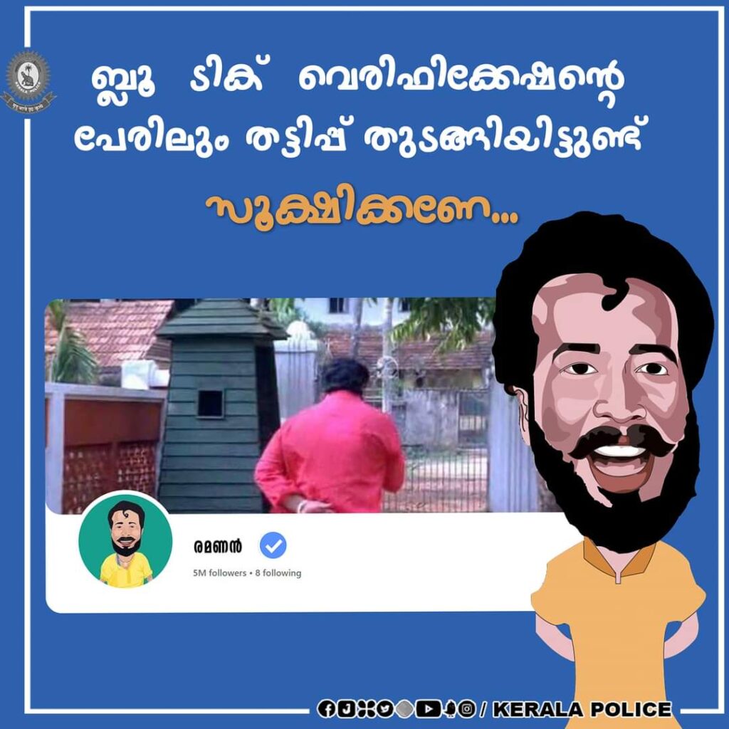 ബ്ലൂ ടിക് വെരിഫിക്കേഷന്റെ പേരിലും തട്ടിപ്പ് ; മുന്നറിയിപ്പുമായി കേരള പോലീസ്