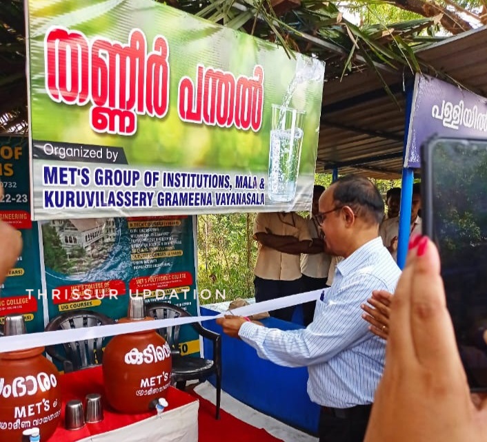 മാള വലിയപറമ്പിൽ ജംഗ്ഷനിൽ ആരംഭിച്ച തണ്ണീർ പന്തൽ; മെറ്റ്സ് ഗ്രൂപ്പ് ഓഫ് ഇൻസ്റ്റ്യൂഷൻസ് അക്കാദമിക് ഡയറക്ടർ ഡോ. എ. സുരേന്ദ്രൻ ഉദ്ഘാടനം ചെയ്തു