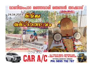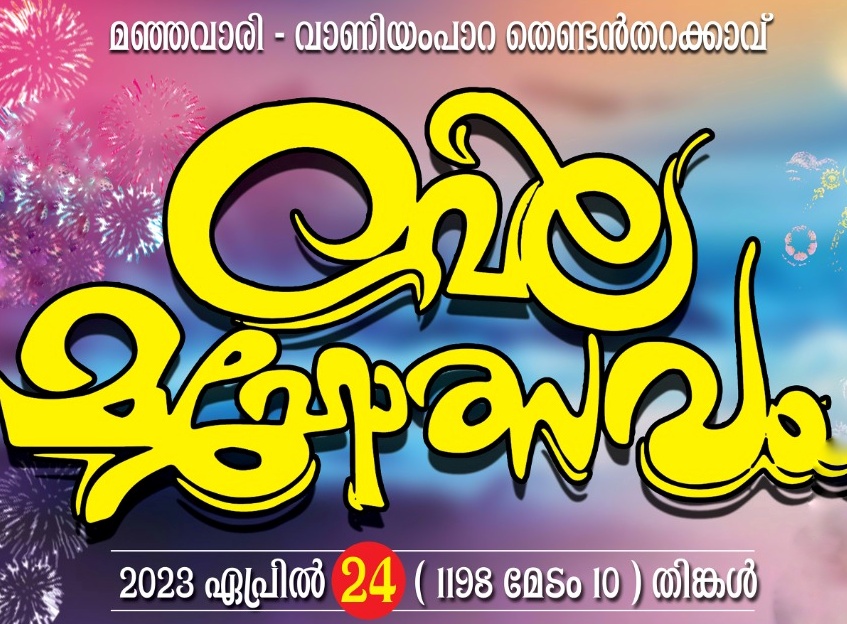 മഞ്ഞവാരി – വാണിയംപാറ തെണ്ടൻതറക്കാവ് വേല മഹോത്സവം 2023 ഏപ്രിൽ 24 ( 1198 മേടം 10 ) തിങ്കളാഴ്ച ആഘോഷിക്കുന്നു