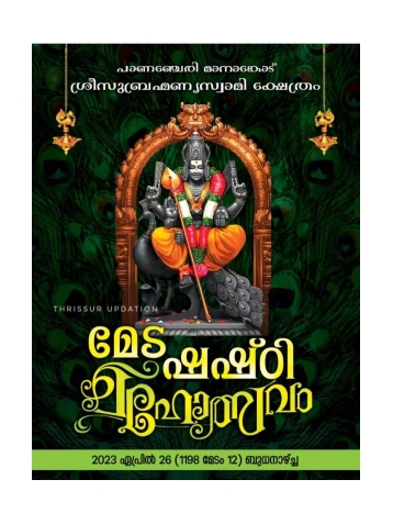 പാണഞ്ചേരി മാനാങ്കോട് ശ്രീ സുബ്രഹ്മണ്യസ്വാമി ക്ഷേത്രത്തിലെ മേട ഷഷ്ഠി മഹോത്സവം നാളെ