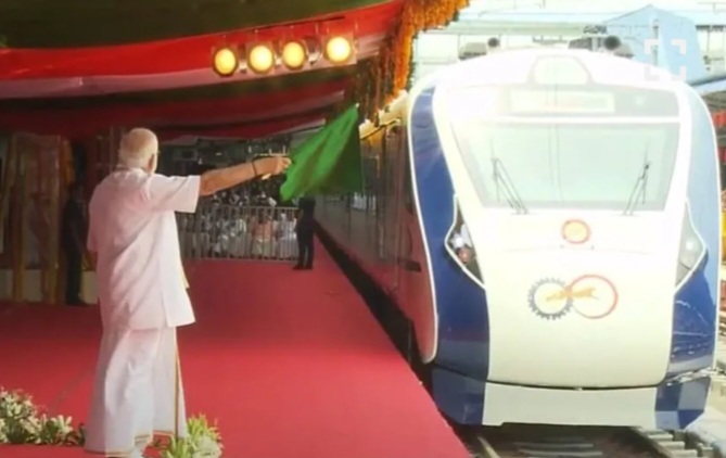 കേരളത്തിന് അനുവദിച്ച ആദ്യ വന്ദേഭാരത് എക്സ്പ്രസ് പ്രധാനമന്ത്രി നരേന്ദ്രമോദി ഫ്ളാഗ് ഓഫ് ചെയ്തു. 11 ജില്ലകളിലൂടെ സർവീസ് നടത്തുന്ന കേരളത്തിലെ ആദ്യത്തെ വന്ദേഭാരത് എക്സ്പ്രസിന് തമ്പാനൂർ റെയിൽവേ സ്റ്റേഷനിലാണ് പ്രധാനമന്ത്രി ഫ്ളാഗ് ഓഫ് ചെയ്തത്.