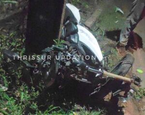 താണിക്കുടത്ത് തൃശ്ശൂർ നിന്നും കുണ്ടുക്കാട് ഭാഗത്തേക്ക് പോകുന്ന ബൈക്കും കാറും തമ്മിലാണ് കൂട്ടിയിടിച്ചത്. ബൈക്ക് യാത്രികന് പരുക്ക് പറ്റി. പരുക്ക് പറ്റിയാളെ ഉടൻ തന്നെ ഓട്ടോറിക്ഷയിൽ കയറ്റി തൃശ്ശൂരുള്ള ആശുപത്രിയിലേക്ക് കൊണ്ടുപോയി.