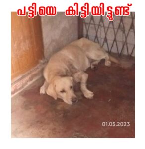 ഒരു പട്ടിയെ കിട്ടിയിട്ടുണ്ട്. നഷ്ടപെട്ടവർ വാണിയംപാറ തച്ചംപേരിൽ കോംപ്ലക്സിൽ എത്തുക.