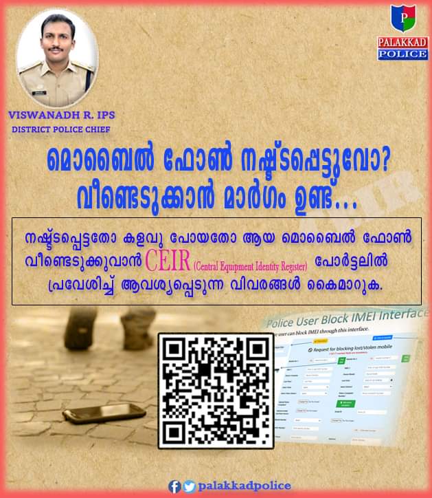 നഷ്ട്ടപ്പെട്ടതോ കളവു പോയതോ ആയ മൊബൈൽ ഫോൺ വീണ്ടെടുക്കുവാൻ ആയി ഒരു