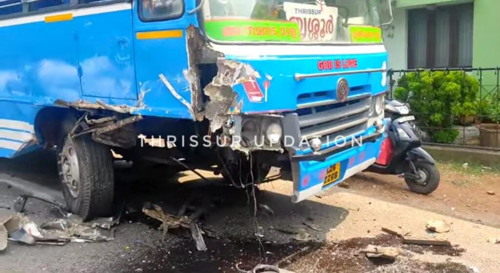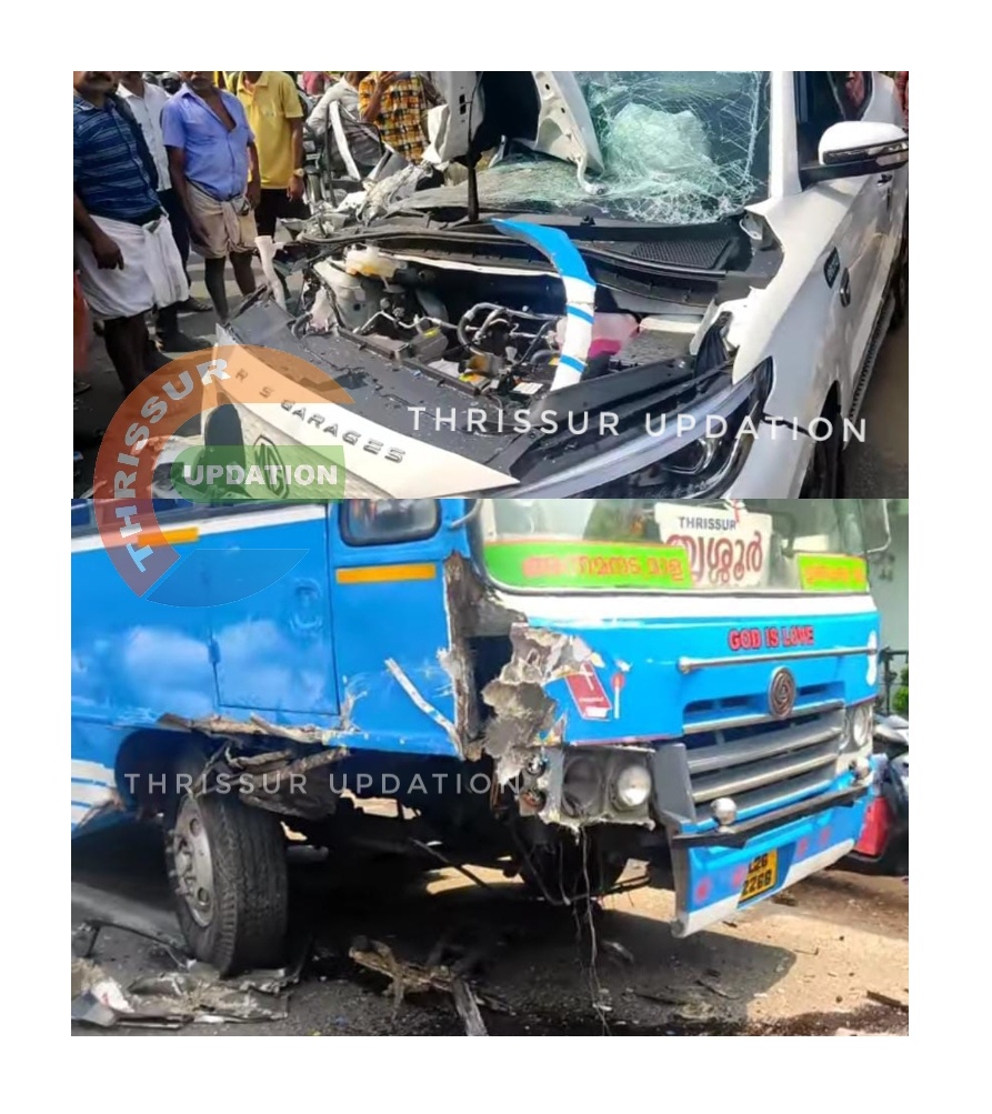 കരുവന്നൂരിൽ ബസും കാറും കൂട്ടിയിടിച്ച് അപകടം