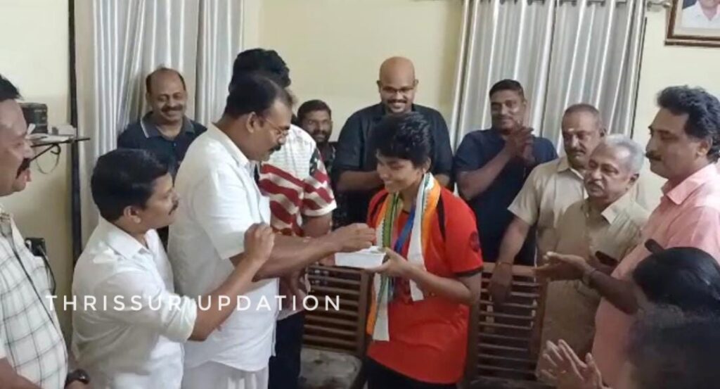 ജമ്മു & കാശ്മീരിൽ നടന്ന 45-ാമത് ദേശീയ പഞ്ചഗുസ്തി മത്സരത്തിൽ; കേരളത്തിനുവേണ്ടി വെള്ളി മെഡൽ നേടിയ എയ്ഞ്ചൽ മരിയയെ ഇന്ത്യൻ നാഷണൽ കോൺഗ്രസ്സിന്റെ നേതൃത്വത്തിൽ ആദരിച്ചു.