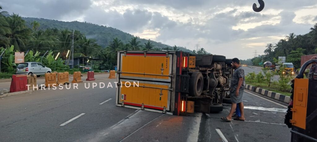 ദേശീയപാത കൊമ്പഴയിൽ മിനി ലോറി നിയന്ത്രണം വിട്ട് മറിഞ്ഞ് അപകടം .