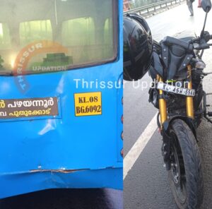 ദേശീയപാത പത്താംകല്ലിൽ ബസ്സിന്റെ പുറകിൽ ബൈക്ക് ഇടിച്ച് അപകടം ഉണ്ടായത്. ഇന്ന് രാവിലെ ഏകദേശം ആറരയോടെയാണ് അപകടം നടന്നത്. തൃശ്ശൂർ ഭാഗത്തേക്ക് പോകുന്ന ട്രാക്കിൽ ബസ്സ് സ്റ്റോപ്പിൽ നിർത്തിയിട്ടിരിക്കുന്ന സമയത്ത് ബസ്സിന്റെ പുറകിൽ ബൈക്ക് വന്നിടിക്കുകയായിരുന്നു. നെയ്യാറ്റിങ്കര സ്വദേശിക്കാണ് പരിക്കേറ്റത്. ഉടൻ തന്നെ എമർജൻസി ടീം എത്തുകയും ആംബുലൻസിൽ തൃശൂരിലെ ആശുപത്രിയിലേക്ക് കൊണ്ടുപോകുകയും ചെയ്തു.