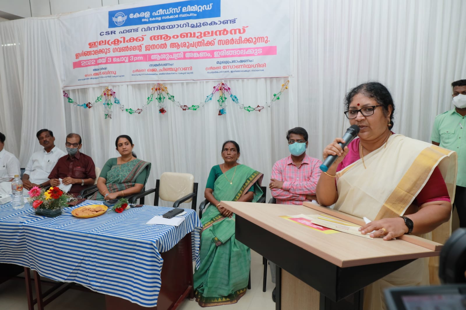 നഗരസഭ ചെയർപേഴ്സൺ സോണിയ ഗിരി അധ്യക്ഷത വഹിച്ചു. കേരള ഫീഡ്സ് ചെയർമാൻ കെ ശ്രീകുമാർ മുഖ്യാതിഥി ആയിരുന്നു. മാനേജിംഗ് ഡയറക്ടർ ഡോ. ബി ശ്രീകുമാർ പദ്ധതി വിശദീകരിച്ചു. നഗരസഭ സ്റ്റാന്റിംഗ് കമ്മിറ്റി ചെയർമാൻമാരായ അംബിക പള്ളിപ്പുറത്ത്, ജെയ്സൺ പാറേക്കാടൻ, വാർഡ് കൗൺസിലർ പി ടി ജോർജ്ജ് എന്നിവർ ആശംസകൾ നേർന്നു. നഗരസഭ വൈസ് ചെയർമാൻ ടി വി ചാർലി സ്വാഗതവും ആശുപത്രി സൂപ്രണ്ട് ഡോ.മിനിമോൾ നന്ദിയും പറഞ്ഞു.