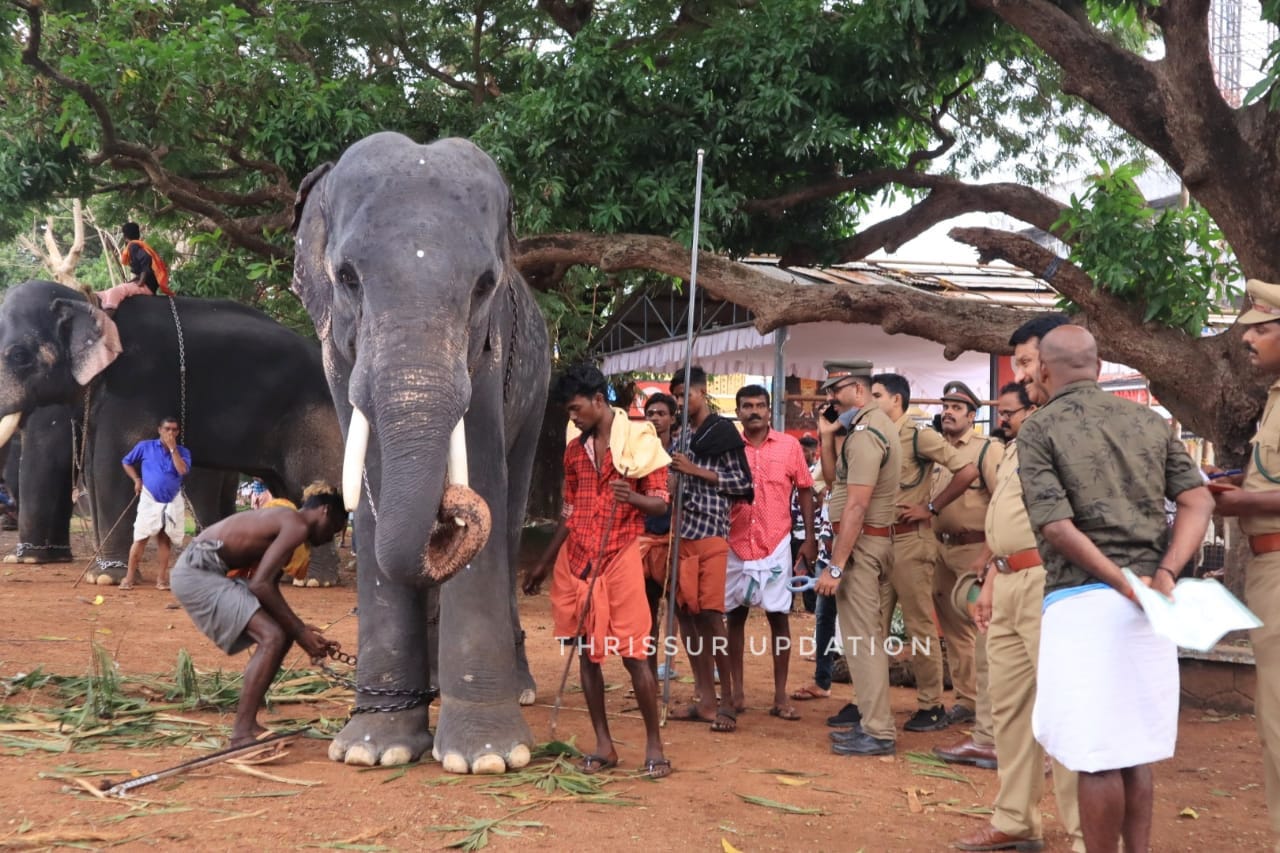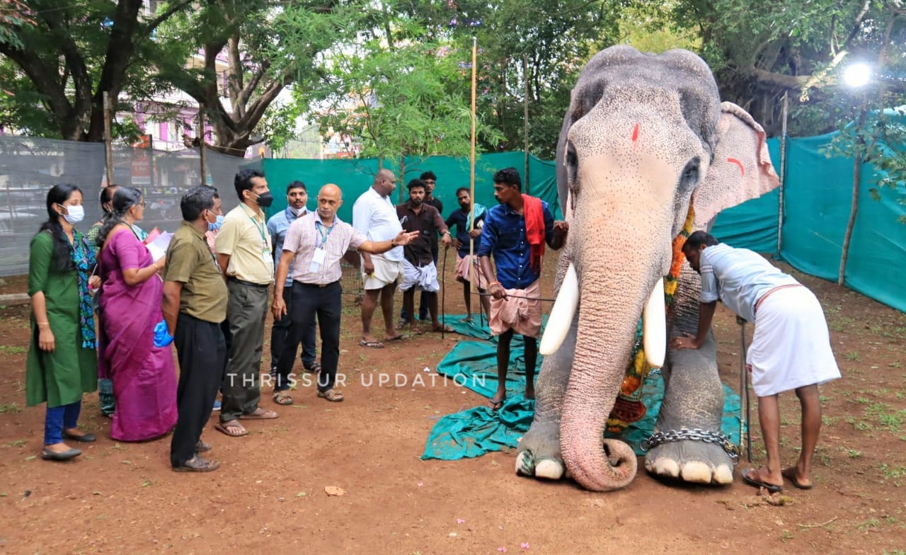 തൃശ്ശൂർ പൂരത്തിനോടു അനുബന്ധിച്ച് ആനകളുടെ ഫിറ്റ്നസ് പരിശോധന ക്ഷേത്ര മൈതാനത്ത് നടന്ന ദൃശ്യങ്ങൾ