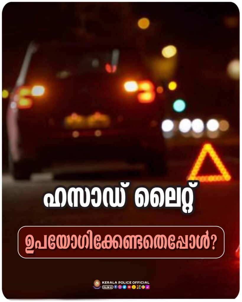 ഹസാഡ് ലൈറ്റ് ഉപയോഗിക്കേണ്ടതെപ്പോൾ?നിർദ്ദേശങ്ങളുമായി കേരള പോലീസ്