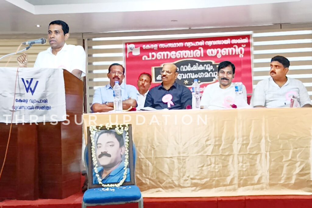 കേരള സംസ്ഥാന വ്യാപാരി വ്യവസായി സമിതി പാണഞ്ചേരി യൂണിറ്റിന്റെ പത്താം വാർഷിക കുടുംബ സംഗമം നടത്തി. ഹോട്ടൽ ഹൈവേ പാലസിൽ വച്ച് നടന്ന ചടങ്ങിൽ പ്രസിഡന്റ് ബാബു കൊള്ളന്നൂർ അധ്യക്ഷത വഹിച്ചു. സമിതി ജില്ലാ പ്രസിഡൻറ് വിജയ് ഹാരി കുടുംബസംരക്ഷണം ഉദ്ഘാടനം ചെയ്തു. വ്യാപാരി വ്യവസായി സമിതി എക്സിക്യൂട്ടീവ് മെമ്പർ ആയിരുന്ന ബെന്നി വെട്ടിയാടാൻ ഫോട്ടോ അനാച്ഛാദനം നടത്തി. മുതിർന്ന വ്യാപാരികളെ ആദരിക്കൽ, ഉന്നത നേട്ടം കൈവരിച്ച പഞ്ചഗുസ്തി ചാമ്പ്യൻ സൗമ്യ ചെമ്പൂത്ര. കുറുക്കുഴൽ വിദഗ്ധൻ അജി, മെമ്പർമാരുടെ മക്കളിൽ എസ്എസ്എൽസി, പ്ലസ് ടു ഉന്നത വിജയം നേടിയ കുട്ടികൾ എന്നിവരെ ആദരിച്ചു. മണ്ണുത്തി പാലിയേറ്റീവ് കെയർ സെൻററിന് വീൽചെയർ നൽകുകയും വ്യാപാരികൾക്ക് മരിച്ചാൽ 5 ലക്ഷം രൂപ കിട്ടുന്ന വ്യാപാര മിത്ര പദ്ധതിയുടെ ഉദ്ഘാടനവും സമിതിയുടെ ഇക്കൊല്ലത്തെ പുതിയ മെമ്പർഷിപ്പ് വിതരണവും ചെയ്തു. പാണഞ്ചേരി സർവീസ് സഹകരണ ബാങ്കിന്റെ ഡയറക്ടർ ബോർഡിലേക്ക് തെരഞ്ഞെടുത്ത എക്സിക്യൂട്ടീവ് അംഗങ്ങളായ ബാബു വിലങ്ങന്നൂർ, സിജോൺ പെരിങ്ങാമറ്റം എന്നിവരെയും സമിതി ആദരിച്ചു, കുട്ടികളുടെ കലാപ്രകടനവും, വിനോദ് kenmore മ്യൂസിക് നൈറ്റ് നടത്തി. യൂണിറ്റ് സെക്രട്ടറി തോമസ് സാമുവൽ, ട്രഷറർ കൃഷ്ണൻകുട്ടി, ഏരിയ പ്രസിഡൻറ് മുദാസർ, ഏരിയ സെക്രട്ടറി വർഗീസ് തെക്കേക്കര, സിപിഎം പാണഞ്ചേരി എൽസിസെക്രട്ടറി മാത്യു നൈനാൻ, പീച്ചി മേഖല സെക്രട്ടറി ബാലകൃഷ്ണൻ , സമിതി മുൻ പ്രസിഡൻറ് പി പി സണ്ണി, തിലകൻ പി പി, മുൻ ഏരിയ സെക്രട്ടറി രാജേന്ദ്ര മുല്ലപ്പള്ളി, മുൻ പഞ്ചായത്ത് പ്രസിഡൻറ് ലില്ലി ഫ്രാൻസിസ്, അംബിക ചിദംബരം, പ്രസിഡൻറ് ക്രിസ്റ്റോ എന്നിവർ പങ്കെടുത്തു