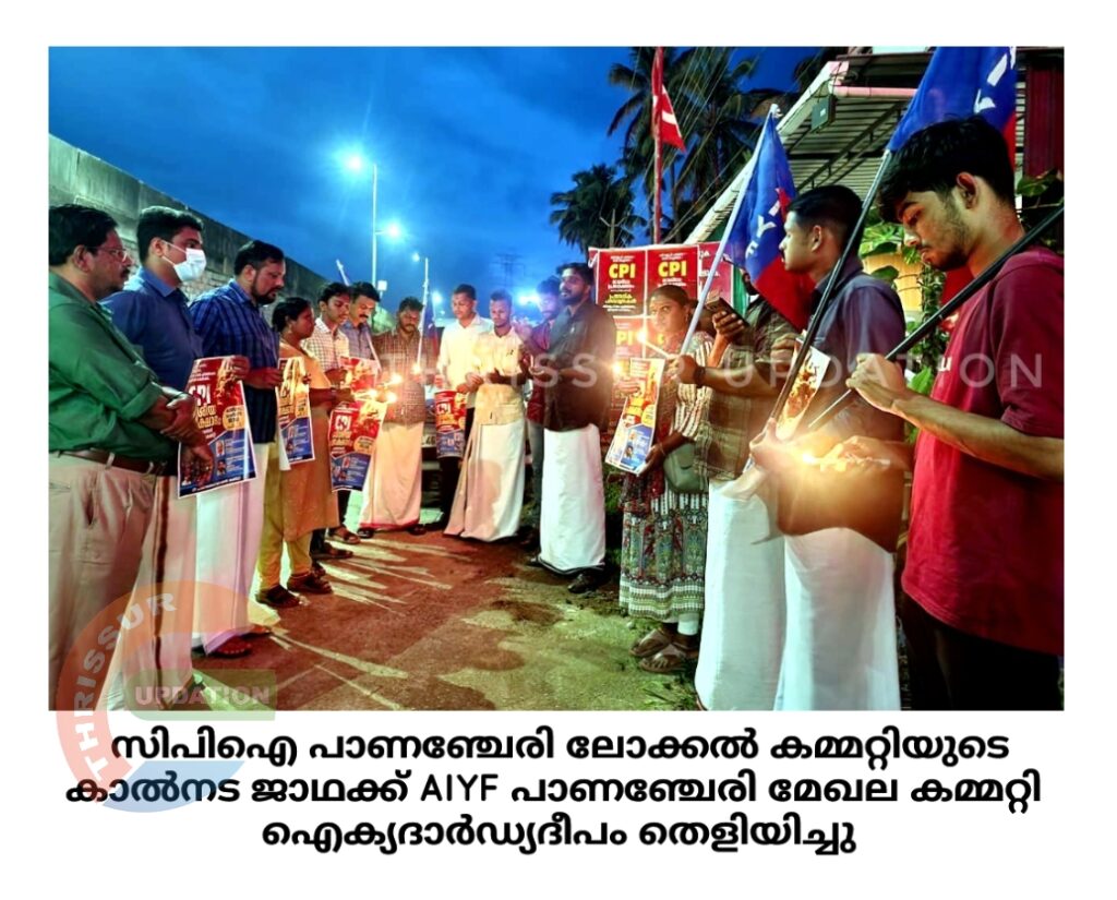 സിപിഐ പാണഞ്ചേരി ലോക്കൽ കമ്മറ്റിയുടെ കാൽനട ജാഥക്ക് AIYF പാണഞ്ചേരി മേഖല കമ്മറ്റി ഐക്യദാർഡ്യദീപം തെളിയിച്ചു
