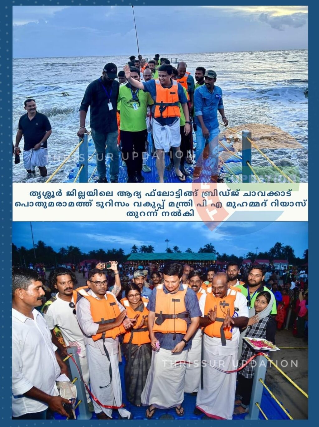തൃശ്ശൂർ ജില്ലയിലെ ആദ്യ ഫ്ലോട്ടിങ്ങ് ബ്രിഡ്ജ് ചാവക്കാട് പൊതുമരാമത്ത് ടൂറിസം വകുപ്പ് മന്ത്രി പി എ മുഹമ്മദ് റിയാസ് തുറന്ന് നൽകി