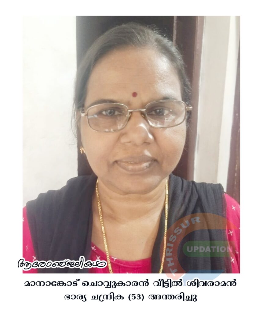 മാനാങ്കോട് ചൊവ്വുകാരൻ വീട്ടിൽ ശിവരാമൻ ഭാര്യ ചന്ദ്രിക (53) അന്തരിച്ചു.