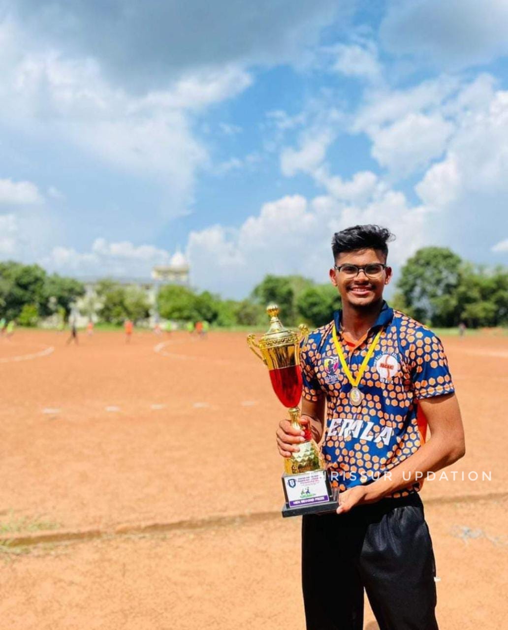 പേരാമംഗലത്തിൻ്റെ കായിക താരമായ ഡെൽവിൻ ഇനി കേരളത്തിൻ്റെയും പേരിൽ അറിയും. അണ്ടർ 19 ടെന്നീസ് ക്രിക്കറ്റ് ടീമിൽ ഭാഗമായി. സൗത്ത് സോൺ മത്സരത്തിൽ മികച്ച പ്രകടനമാണ് കാഴ്ചവെച്ചത്. തമിഴ്നാട് ടീമുമായി കളിച്ച് വിജയിച്ച കേരള ടീമിൻ്റ ജഴ്സിയണിഞ്ഞ് ഡെൽവിൻ കളികളത്തിലിറങ്ങി.പേരാമംഗലം നീലങ്കാവിൽ ജോബിയുടെയും റീജയുടേയും മകനാണ് ഈ അഭിമാനതാരം.