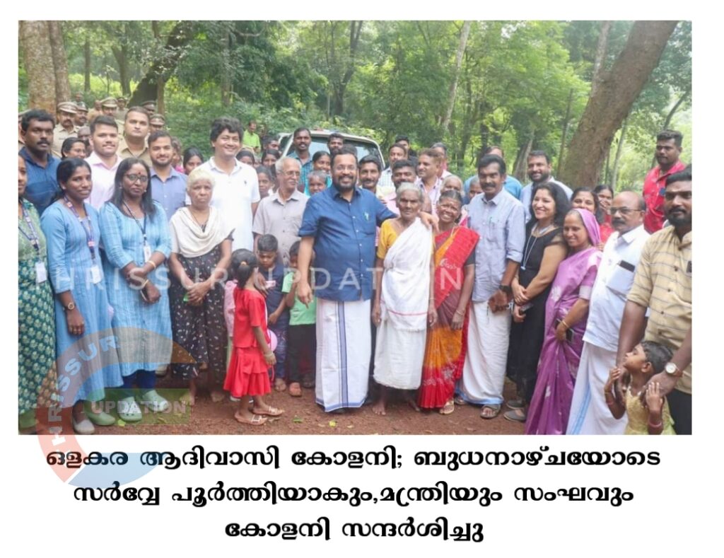 പാണഞ്ചേരി പഞ്ചായത്തിലെ ഒളകര കോളനി നിവാസികളായ 44 കുടുംബങ്ങള്ക്ക് വനാവകാശ നിയമപ്രകാരം ഭൂമി ലഭ്യമാക്കുന്നതിനു മുന്നോടിയായുള്ള സർവ്വേ നടപടികള് ബുധനാഴ്ചയോടെ പൂര്ത്തിയാകുമെന്ന് റവന്യൂ മന്ത്രി കെ രാജന്. സര്വ്വേ നടപടികള് ഉള്പ്പെടെ ഭൂവിതരണവുമായി ബന്ധപ്പെട്ടു നടക്കുന്ന പ്രവര്ത്തനങ്ങളുടെ പുരോഗതി വിലയിരുത്തുന്നതിനായി ഒളകര കോളനി സന്ദര്ശിച്ച ശേഷം സംസാരിക്കുകയായിരുന്നു മന്ത്രി.