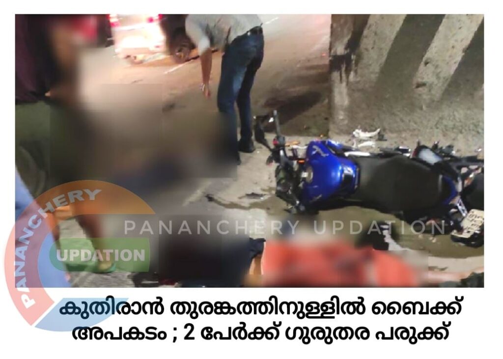 കുതിരാൻ തുരങ്കത്തിനുള്ളിൽ ബൈക്ക് അപകടം; 2 പേർക്ക് പരിക്ക്