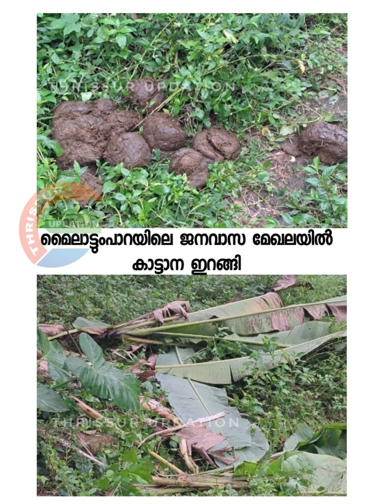 വെളുപ്പിന് രണ്ട് മണിക്ക് കാരേക്കാട്ടിൽ ജിഷോയുടെ വീടിന് സമീപത്താണ് കാട്ടാനയെ കണ്ടത്