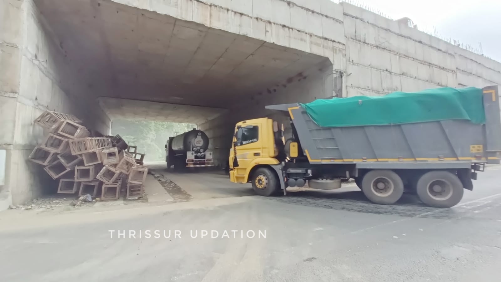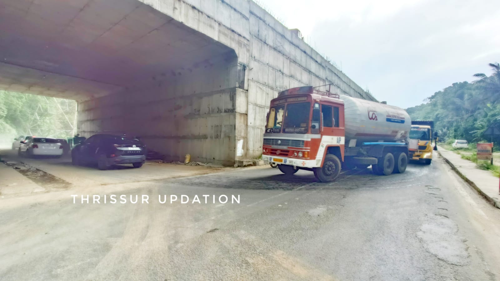 ദേശീയ പാത വഴുക്കുംപാറയിൽ ഇന്ന് കാലത്ത് 9 മണിക്കാണ് തൃശൂർ ഭാഗത്തേക്ക് പോകുന്ന പാലത്തിന്റെ അടിയിൽ ഒരു കണ്ടെയ്നർ കേടാവുകയും തുടർന്ന് വലത് വശം ചേർന്ന് പോയ ടിപ്പർ താഴുകയായിരുന്നു. തൃശൂർ ഭാഗത്ത് നിന്നും വരുന്ന വാഹനങ്ങൾ പലത്തിന്റെ അടിയിലൂടെ വലത് ഭാഗത്ത് കൂടെ കടത്തിവിട്ടാണ് ഗതാഗതം നിയന്ത്രിക്കുന്നത് നിലവിൽ തൃശ്ശൂർ ഭാഗത്തേക്ക് ബ്ലോക്ക് ഉണ്ട് .