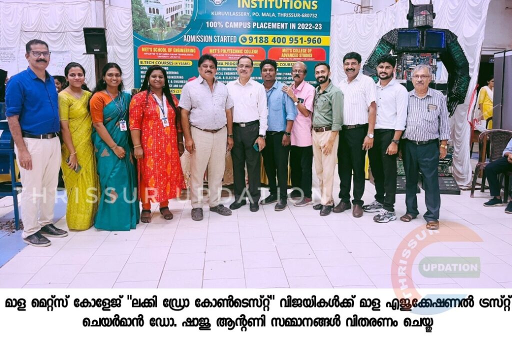 മാള മെറ്റ്സ് കോളേജ് പവലിയൻ ഒരുക്കിയ ലക്കി ഡ്രോ കോണ്ടസ്റ്റിൽ വിജയികളായ വിദ്യാർത്ഥികൾക്ക് സമ്മാനങ്ങൾ വിതരണം ചെയ്തു. വിജയഗിരി പബ്ലിക് സ്കൂൾ പ്രിൻസിപ്പാൾ എൻ. എം. ജോർജ്ജിന്റെ അധ്യക്ഷതയിൽ നടന്ന ചടങ്ങിൽ മാള എജുക്കേഷണൽ ട്രസ്റ്റ് ചെയർമാൻ ഡോ ഷാജു ആന്റണിയാണ് വിജയികൾക്ക് സമ്മാന വിതരണം ഉദ്ഘാടനം ചെയ്തത്.