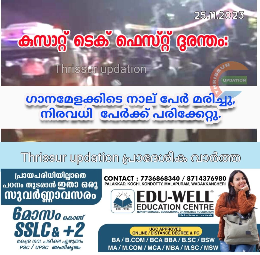 കളമശേരി കുസാറ്റില് ഗാനസന്ധ്യയ്ക്കിടെ തിക്കും തിരക്കും; നാലു വിദ്യാര്ഥികള് മരിച്ചു