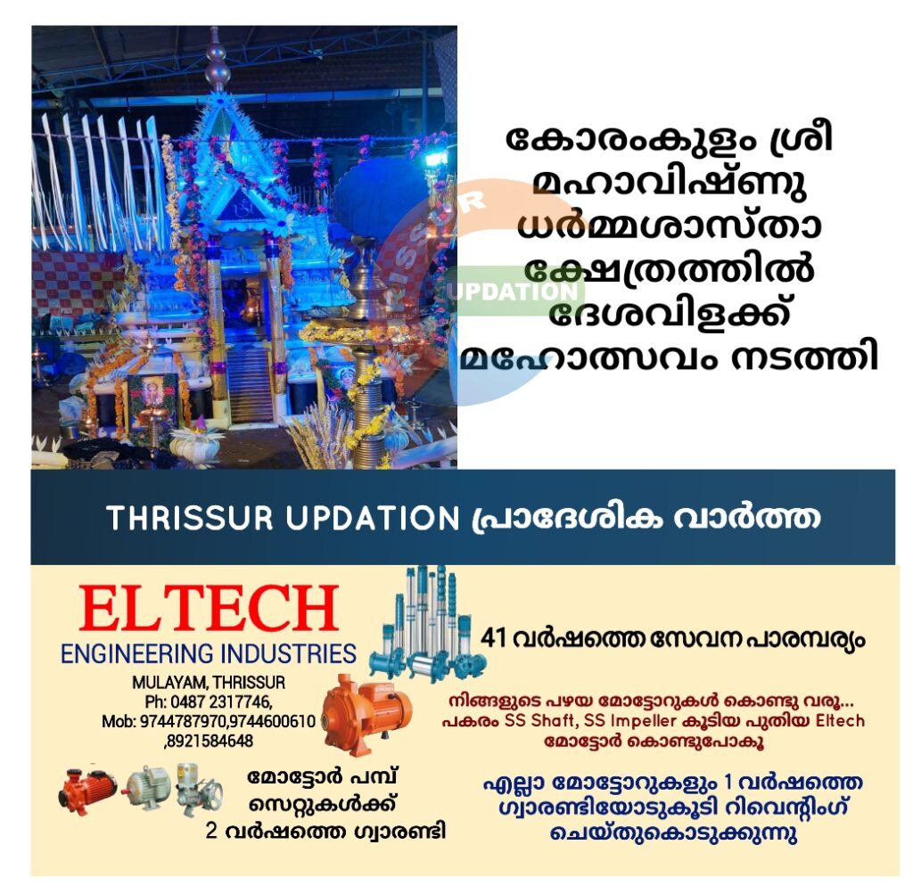 ആപൽബാന്ധവനും അനാഥരക്ഷകനും ആശ്രിത വത്സലനുമായ ശ്രീധർമ്മശാസ്താവിൻ്റെ കേളികൾ വിളിച്ചോതുന്ന, പാടി പുകഴ്ത്തുന്ന കോരംകുളം ദേശവിളക്ക് മഹോത്സവം നടത്തി