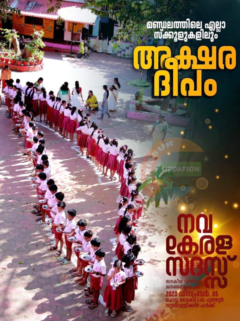 ഒല്ലൂര് മണ്ഡലം നവകേരള സദസ്സിനോട് അനുബന്ധിച്ച് മണ്ഡലത്തിലെ സ്ക്കൂളുകളില് ഇന്ന് അക്ഷര ദീപം തെളിയിച്ചു. പട്ടിക്കാട് ഗവ. എല്പി സ്ക്കൂളില് കേരളത്തിന്റെ മാപ്പിന്റെ മാതൃകയില് അണിനിരന്ന് ദീപം തെളിയിച്ചു