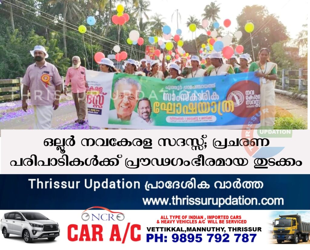 നവ കേരള സദസ്സ് ജനാധിപത്യത്തിന്റെ പരിപൂര്ണ്ണതയെന്ന് ചലച്ചിത്ര താരം ടി.ജി. രവി. ഒല്ലൂര് നവ കേരള സദസ്സിന്റെ പ്രചരണാര്ത്ഥം പുത്തൂര് ഗ്രാമപഞ്ചായത്തിന്റെ നേതൃത്വത്തില് നടന്ന സാംസ്കാരിക സദസ്സിന്റെ ഉദ്ഘാടനം നിര്വഹിച്ചു സംസാരിക്കുകയായിരുന്നു ടി.ജി. രവി. പ്രകടമായ മാറ്റങ്ങളാണ് കഴിഞ്ഞ കാലയളവില് വികസന രംഗത്ത് ഉണ്ടായിരിക്കുന്നത്. ജനങ്ങള്ക്ക് പരാതികളും നിവേദനങ്ങളും നല്കാനുള്ള വേദി ആവുകയാണ് ഓരോ നവ കേരള സദസ്സും. രാജ്യത്ത് ആകമാനം ഇതൊരു മാതൃക മുന്നേറ്റമാണെന്നും ടി.ജി. രവി കൂട്ടിച്ചേര്ത്തു.
