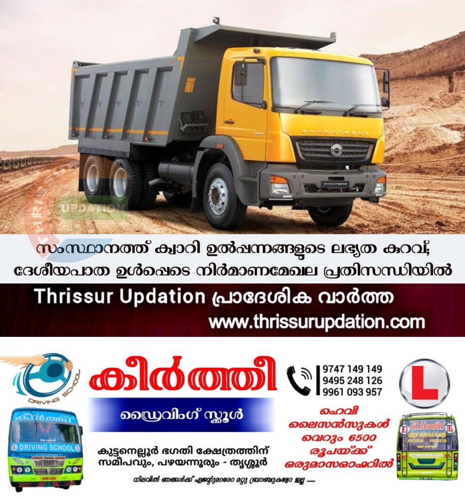 ദേശീയപാത ഉൾപ്പെടെയുള്ള നിർമാണം പ്രവർത്തികൾ ഇഴയുന്നതിനുള്ള പ്രധാന കാരണം സംസ്ഥാനത്തെ ക്വാറി ഉൽപന്നങ്ങളുടെ ലഭ്യത കുറവ്.