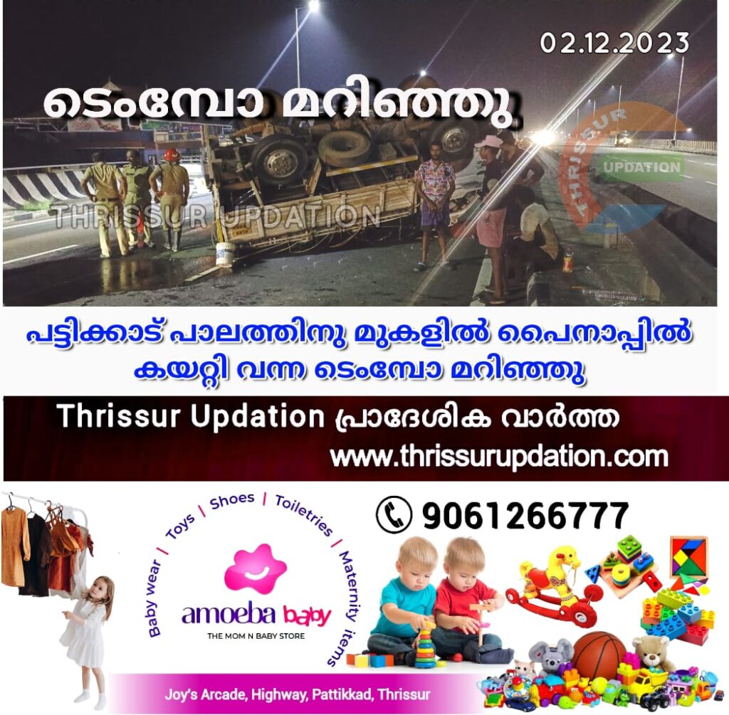 പട്ടിക്കാട് പാലത്തിനു മുകളിൽ പൈനാപ്പിൽ കയറ്റി വന്ന ടെംമ്പോ മറിഞ്ഞു