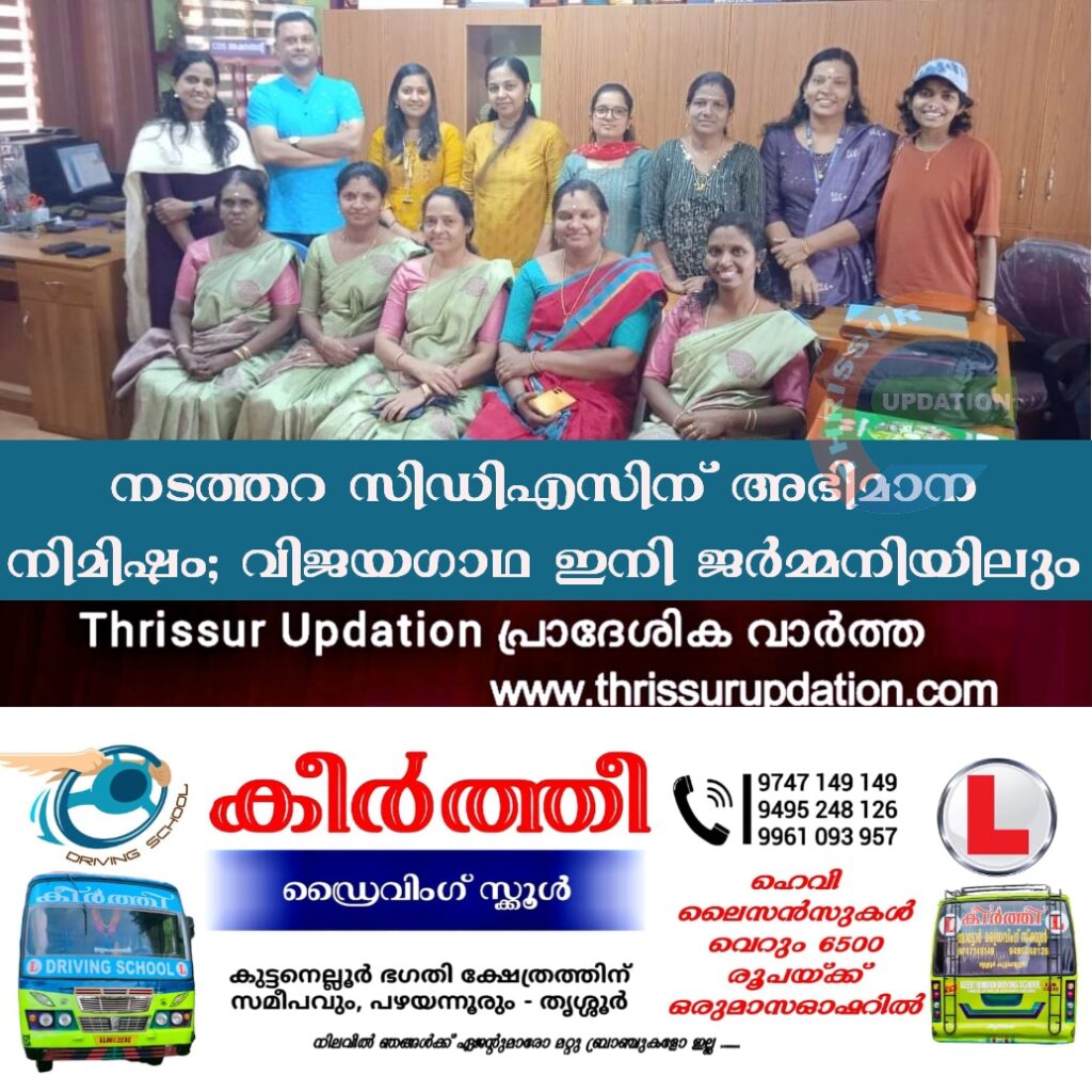സ്ത്രീ ശാക്തീകരണത്തിന്റെയും കൂട്ടായ്മയുടെയും ഉദാത്ത മാതൃകയായ നടത്തറ സിഡിഎസിൻ്റെ വിജയഗാഥ ഇനി ജർമ്മനിയിലും അറിയപ്പെടും. ജർമ്മനിയിലെ പ്രമുഖ മാഗസിനായ ബ്രാൻഡ് ഇയോൺസിന്റെ പുതിയ പതിപ്പിലാണു നടത്തറ സിഡിഎസിൻ്റെ അഭിമാന യാത്ര രേഖപ്പെടുത്തുക. ‘ഗ്രാമീണ ഇന്ത്യയെ കുറിച്ചുള്ള രേഖപ്പെടുത്തൽ’ എന്ന ആശയത്തിന് കീഴിലാണ് നടത്തറ സിഡിഎസിനെ കുറിചുള്ള വിവരണം ചേർക്കപ്പെടുക.