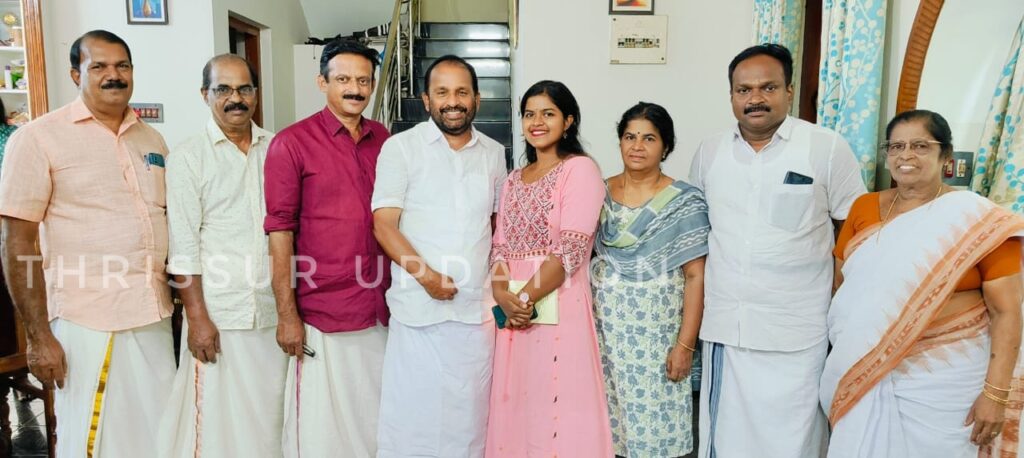 രണ്ട് പതിറ്റാണ്ടിന് ശേഷം തിരുവനന്തപുരം ലോ കോളേജിൻ KSU ചെയർപേഴ്സൺ ആയി വിജയിച്ച പാണഞ്ചേരി കമ്പിളി വീട്ടിൽ പ്രസന്നൻ മകൾ കെ പി അപർണയെ തൃശ്ശൂർ എംപി ടി എൻ പ്രതാപൻ വീട്ടിലെത്തി അനുമോദിച്ചു.