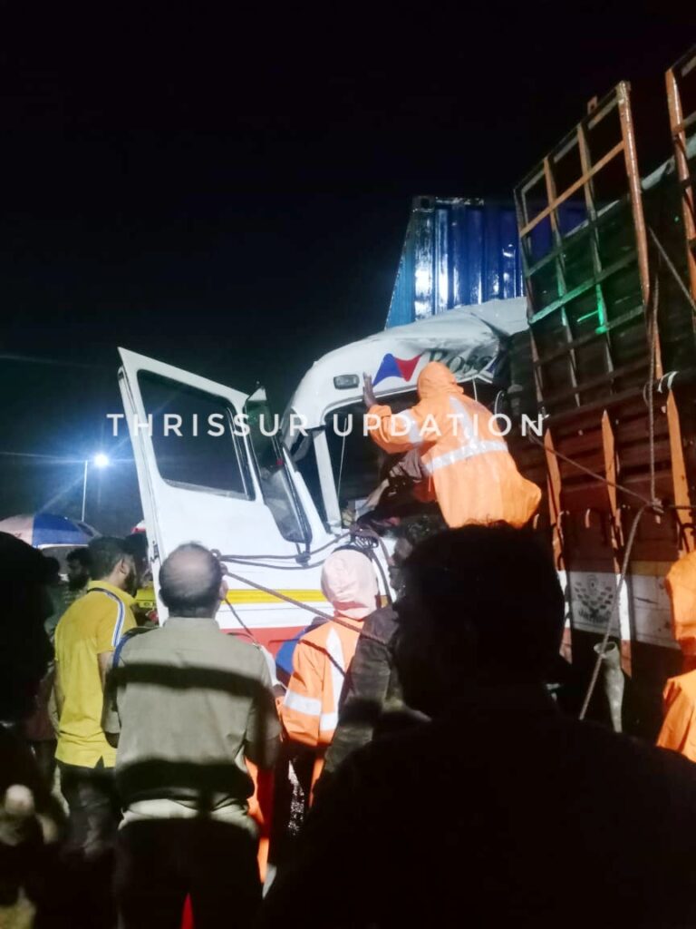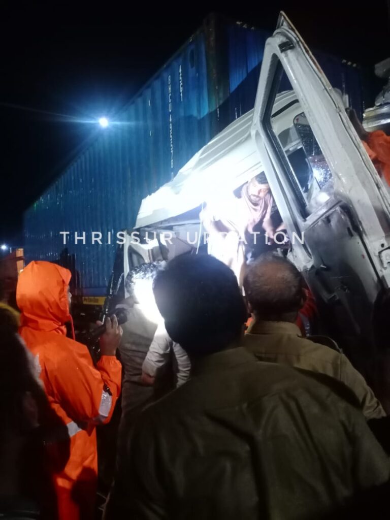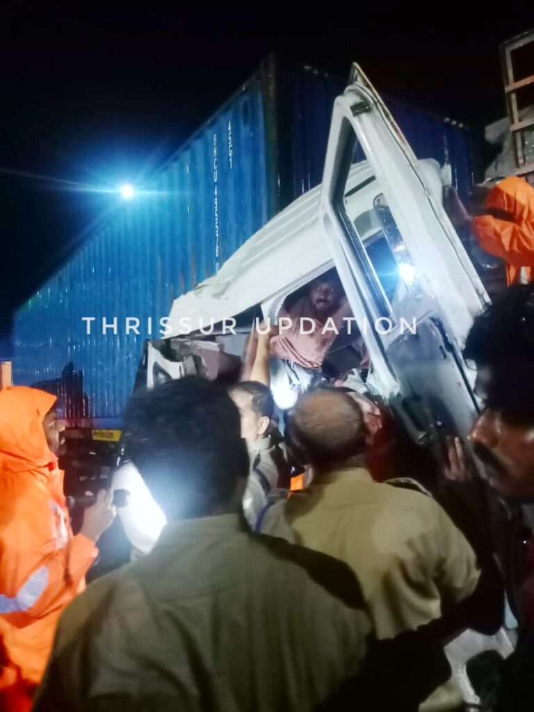 ഇടിയുടെ ആഘാതത്തിൽ കണ്ടൈനർ ലോറിയുടെ മുൻഭാഗം പൂർണ്ണമായും തകർന്നു. കണ്ടൈനർ ലോറിയിൽ കുടുങ്ങി കിടന്ന ഡ്രൈവറെ ഫയർഫോഴ്സ് ഉദ്ദ്യോഗസ്ഥർ ഇലക്ട്രിക്ക് കട്ടർ ഉപയോഗിച്ച് സ്റ്റീയറിങ്ങും സീറ്റും കട്ട് ചെയ്താണ് ഡ്രൈവറെ പുറത്തെടുത്തത്. ഒരു മണിക്കൂർ സമയം എടുത്താണ് ഡ്രൈവറെ രക്ഷപ്പെടുത്തിയത്. തൃശ്ശൂർ ഫയർഫോഴ്സ് അസി.സ്റ്റേഷൻ ഓഫീസർ സുരേഷിന്റെ നേതൃത്വത്തിലുള്ള സംഘമാണ്പുറത്തെടുത്തത്.ഉടൻ തന്നെ 108 ആംബുലൻസിൽ തൃശ്ശൂരിലെ ആശുപത്രിയിൽ പ്രവേശിപ്പിച്ചു