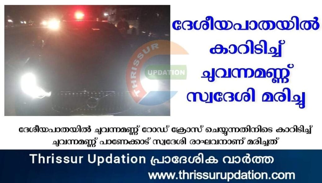 തൃശ്ശൂർ ഭാഗത്തേക്ക് പോകുകയായിരുന്ന കാറുകളാണ് വയോധികനെ ഇടിച്ചത്. പരുക്ക് പറ്റിയ ആളെ ഉടൻ തന്നെ ആംബുലൻസിൽ തൃശ്ശൂരിലുള്ള ആശുപത്രിയിലേക്ക് കൊണ്ടുപോയി ചുവന്നമണ്ണ് പാണേക്കാട് സ്വദേശി വാകയിൽ വിട്ടീൽ രാഘവനാണ് മരിച്ചത്.ടോൾ പിരിച്ച് തുടങ്ങിയിട്ടും മണ്ണുത്തി മുതൽ വടക്കഞ്ചേരി വരെ ബസ് സ്റ്റോപ്പുകളിൽ റോഡ് ക്രോസ് ചെയ്യാൻ സംവിധാനങ്ങൾ ഇല്ലാത്തതിനാൽ നിരവധി അപകടങ്ങളാണ് നടന്ന് കൊണ്ടിരിക്കുന്നത്.