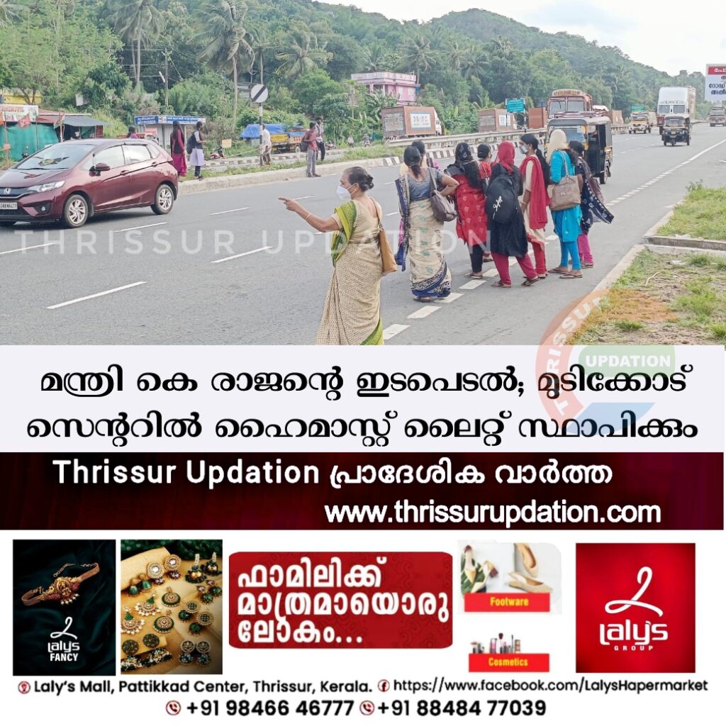 ദേശീയപാതയിലെ വെളിച്ചക്കുറവ് മൂലം നിരന്തരം അപകടമരണങ്ങൾ സംഭവിക്കുന്ന മുടിക്കോട് സെന്ററിൽ ഹൈമാസ്റ്റ് ലൈറ്റ് സ്ഥാപിക്കും. മന്ത്രി കെ രാജന്റെ അധ്യക്ഷതയിൽ ചേർന്ന യോഗത്തിലാണ് ദേശീയപാത അധികൃതർ ഹൈമാസ്റ്റ് ലൈറ്റ് സ്ഥാപിക്കുന്നതിന് അനുമതി നൽകിയത്. തൃശൂർ ഭാഗത്തേക്കുള്ള പാതയോട് ചേർന്നാണ് ലൈറ്റ് സ്ഥാപിക്കുക. രണ്ടാഴ്ചക്കുള്ളിൽ പണികൾ പൂർത്തീകരിക്കാൻ കഴിയുമെന്ന് പ്രതീക്ഷിക്കുന്നതായി മന്ത്രി അറിയിച്ചു. ദേശീയപാതയിലെ വെളിച്ചക്കുറവ് അപകടങ്ങൾക്ക് വഴിയൊരുക്കുക മാത്രമല്ല രക്ഷാപ്രവർത്തനങ്ങളെയും സാരമായി ബാധിക്കാറുണ്ട്. ഇതോടെ മുടിക്കോട് സെന്ററിൽ നടക്കുന്ന അപകടങ്ങൾക്ക് താൽക്കാലിക പരിഹാരമാകുമെന്ന പ്രതീക്ഷയിലാണ് നാട്ടുകാർ.