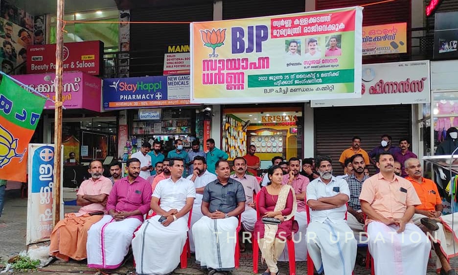 സ്വർണ്ണകള്ളക്കടത്തിൽ പങ്കാളിയായ മുഖ്യമന്ത്രി പിണറായി വിജയൻ രാജി വയ്ക്കണം എന്ന് ആരോപിച്ചി ഭാരതീയ ജനതാ പാർട്ടി പീച്ചി മണ്ഡലം നടത്തിയ പട്ടിക്കാട് സെന്ററിൽ സായാഹ്ന ധർണ്ണ നടത്തി. പീച്ചി മണ്ഡലം പ്രസിഡന്റ് പ്രനീഷ് നടുവിലവളപ്പിൽ അധ്യക്ഷത വഹിച്ചു. BJP ജില്ലാ വൈസ് പ്രസിഡന്റ് സുജയ് സേനൻ ഉദ്ഘാടനം ചെയ്ത് സംസാരിച്ചു. മണ്ഡലം വൈസ് പ്രസിഡന്റ് ജയൻ പുശ്ശേരി സ്വാഗതം ചെയ്ത ധർണയിൽ സന്തോഷ് കാക്കനാട് , പ്രശാന്ത് എൻ എച്ച് ആശംസകൾ അറിയിച്ചു. ഇന്ദ്രവജ്ര-മണ്ഡലം സെക്രട്ടറി സുബീഷ് , മണ്ഡലം വൈസ് പ്രസിഡന്റ് ദിവ്യാസജി , പാണഞ്ചേരി ഏരിയ പ്രസിഡന്റ് വിപിൻദാസ്,മണ്ഡലം ഭാരവാഹികളായ അമൽ, ലീജീഷ്, സുമേഷ് ,ലിന്റോ ,ഗിരീഷ് എന്നിവർ പങ്കെടുത്തു.