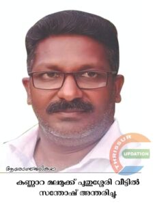 കണ്ണാറ മലമുക്ക് പുതുശ്ശേരി വീട്ടിൽ സന്തോഷ് അന്തരിച്ചു. സംസ്കാരം ഇന്ന് ( 27.12.2023 ബുധനാഴ്ച) 11.30ന് ചവറാംപാടം ബയൂലയിൽ . ഭാര്യ: ജെൻസി, മക്കൾ : സ്നേഹ , ലെ ന , ഡോണ