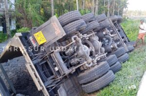 ദേശീയപാത പാണഞ്ചേരിയിൽ നിയന്ത്രണം വിട്ട ടോറസ് ലോറി മറിഞ്ഞ് അപകടം.