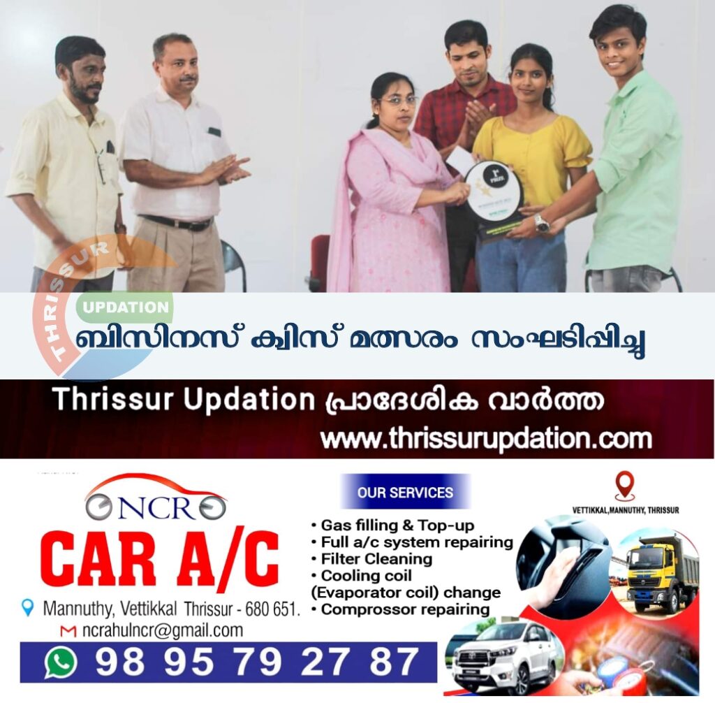 കെല്ട്രോണ് അക്കൗണ്ടിംഗ് ആന്ഡ് ടാക്സേഷന് സ്റ്റഡി സെന്റര് പ്ലസ് ടു കോമേഴ്സ് വിദ്യാര്ഥികള്ക്കായി ജില്ലാതലത്തില് ബിസിനസ് ക്വിസ് മത്സരം സംഘടിപ്പിച്ചു. സെന്റ് തോമസ് കോളേജ് ജൂബിലി ബ്ലോക്കില് നടത്തിയ മത്സരത്തില് കാല്ഡിയന് സിറിയന് എച്ച് എസ് എസ്, വിവേകോദയം ബോയ്സ് എച്ച് എസ് എസ്, ഇരിങ്ങാലക്കുട നാഷണല് എച്ച് എസ് എസ് എന്നീ സ്കൂളുകള് യഥാക്രമം ഒന്നും രണ്ടും മൂന്നും സ്ഥാനങ്ങള് കരസ്ഥമാക്കി. വിജയികള്ക്ക് സെന്റ് തോമസ് കോളേജ് കോമേഴ്സ് വിഭാഗം മേധാവി ഡോ. പ്രൊഫ. ഡെയ്സിലാന്റ് തട്ടില് ക്യാഷ് അവാര്ഡ് സമ്മാനിച്ചു.