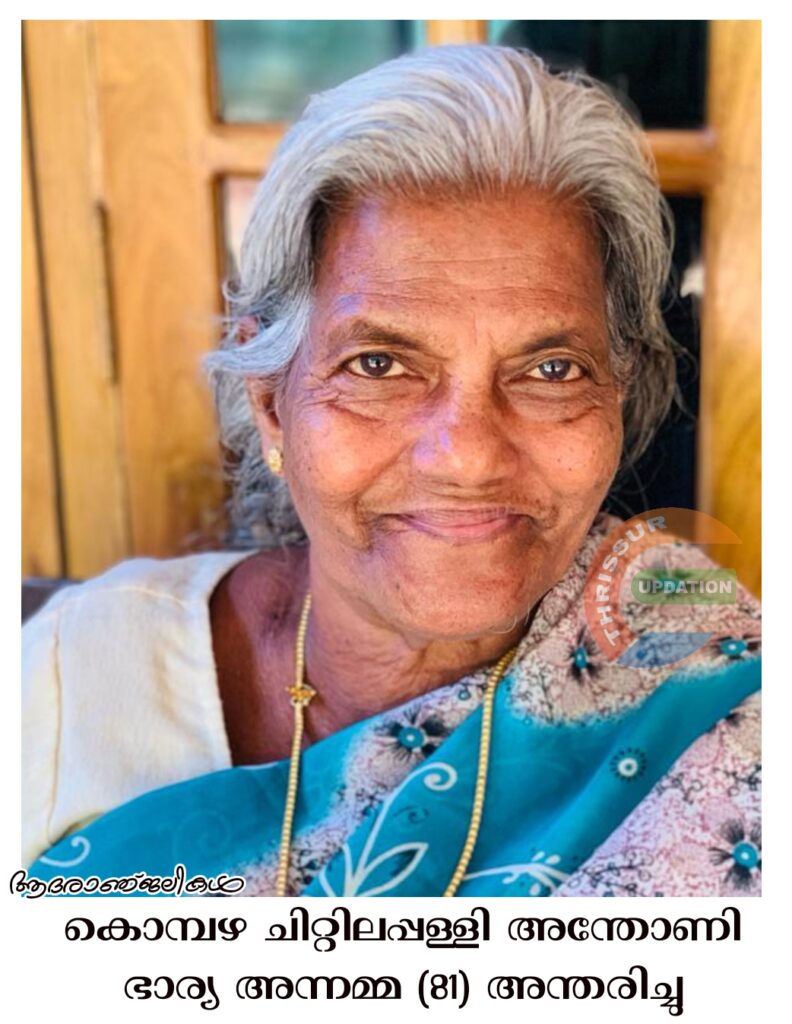കൊമ്പഴ ചിറ്റിലപ്പള്ളി അന്തോണി ഭാര്യ അന്നമ്മ (81) അന്തരിച്ചു.കൊമ്പഴ സെന്റ് ജോസഫ് പള്ളിയിൽ നടക്കും.