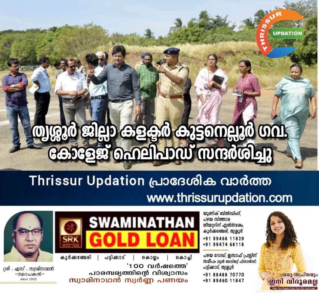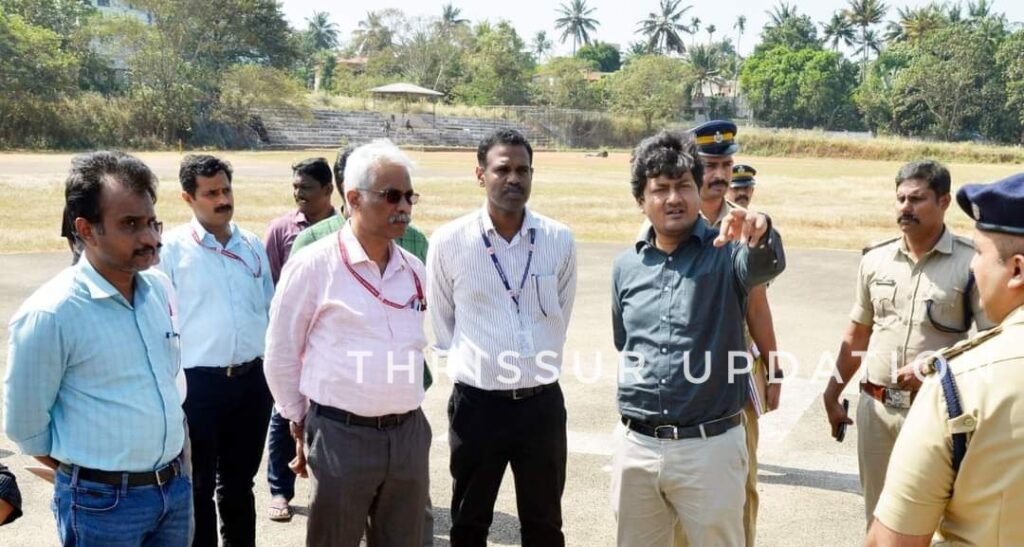 ജനുവരി മൂന്നിലെ പ്രധാനമന്ത്രി നരേന്ദ്ര മോദിയുടെ സന്ദർശനത്തിൻ്റെ ഭാഗമായി സുരക്ഷാ മുൻകരുതൽ കൈക്കൊള്ളുന്നതിന് ജില്ലാ കളക്ടർ വി.ആർ. കൃഷ്ണ തേജ കുട്ടനെല്ലൂർ സി അച്ചുതമേനോൻ ഗവ.കോളേജ് ഹെലിപാഡ് സന്ദർശിച്ചു.